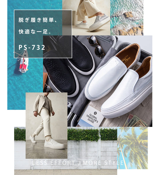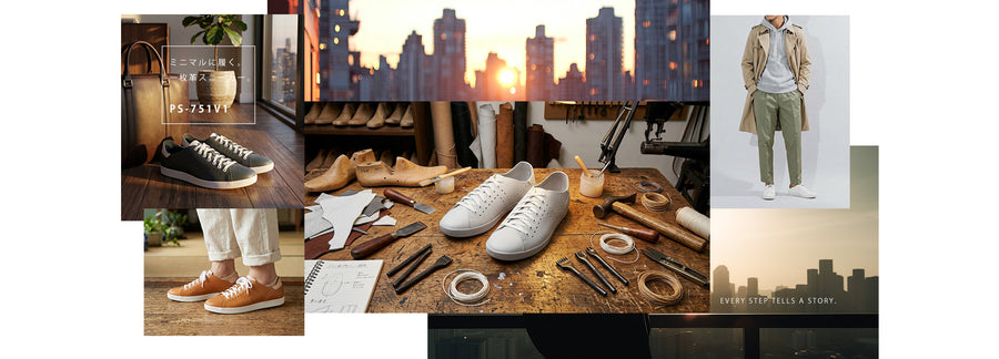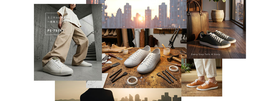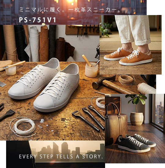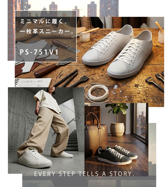 ラグジュアリーは、足元から始まる。 【PS-79 MODA】 PS-79 MODAは、クラシックなコート系シルエットをベースに、きめ細かい上質なカウレザーを使用。その革に、色の濃淡や陰影を生み出す独特な加工を施し、一足ごとに異なる表情を持つ、ラグジュアリーなスニーカーに仕上げました。 履き込むほどに味わいを増し、革靴のような色気と、スニーカーの軽快さを併せ持つ一足。 大人の足元にふさわしい、存在感のあるモデルです。 ・色合いの変化:職人により一足一足特殊な加工によって、革の表面に独特の色合いや色の変化が生み出されています。 ・陰影を持つ加工:革の表面には、陰影や立体感を演出するための加工が施されています。これにより、革の質感がより豊かに表現され、独特の雰囲気を持つスニーカーに仕上がっています。 ・快適な履き心地:高品質なカウレザーは、履き込むほどに馴染み、快適な履き心地を提供します。また、しっかりとした作りで足をしっかりサポートやライニング、インソールにもカウレザーを使用し足蒸れを軽減するなど、長時間の歩行でも疲れ難く快適に履けるスニーカーです。 詳細 アッパーUPPER フルグレインレザーFull-Grain Leather ライニングLINING カウレザーCow Leather インソールIN-SOLE Open-Sell PU form/カウレザー ウレタンフォームの種類 軽く通気性もよく耐久性に優れた素材 アウトソールOUT-SOLE ラバーRubber *VIBRAM 社