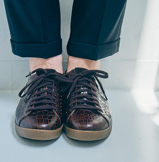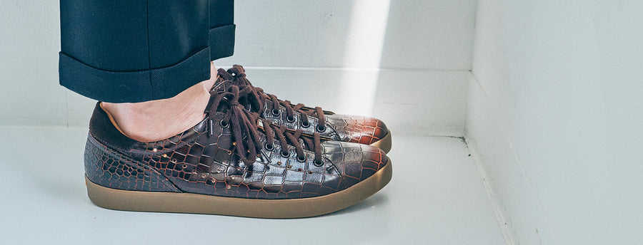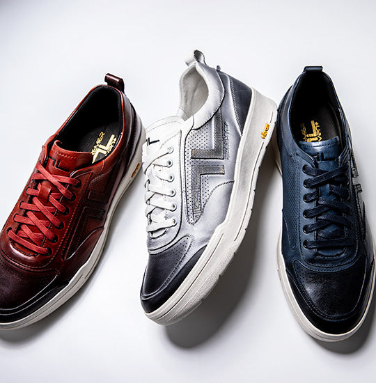 クラシカルなラグジュアリースニーカー 【PS-77 NOVO】 PS-77 NOVOは、コート系のフォームをキープしつつ、毛穴細かい上質なカウレザーに色合いの変化や陰影を持つ独特な加工を施しラグジュアリ感が高いスニーカー。 ・色合いの変化:職人により一足一足特殊な加工によって、革の表面に独特の色合いや色の変化が生み出されています。 ・陰影を持つ加工:革の表面には、陰影や立体感を演出するための加工が施されています。これにより、革の質感がより豊かに表現され、独特の雰囲気を持つスニーカーに仕上がっています。 ・快適な履き心地:高品質なカウレザーは、履き込むほどに馴染み、快適な履き心地を提供します。また、しっかりとした作りで足をしっかりサポートやライニング、インソールにもカウレザーを使用し足蒸れを軽減するなど、長時間の歩行でも疲れ難く快適に履けるスニーカーです。 詳細 アッパーUPPER フルグレインレザーFull-Grain Leather ライニングLINING カウレザーCow Leather インソールIN-SOLE Open-Sell PU form/カウレザー ウレタンフォームの種類 軽く通気性もよく耐久性に優れた素材 アウトソールOUT-SOLE ラバーRubber *VIBRAM 社